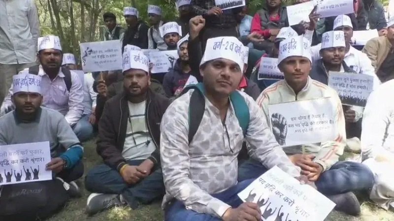 Semi-nude protest: रिक्त पदों पर भर्ती की मांग को लेकर चयनित शिक्षक अभ्यर्थियों का अर्धनग्न प्रदर्शन जारी