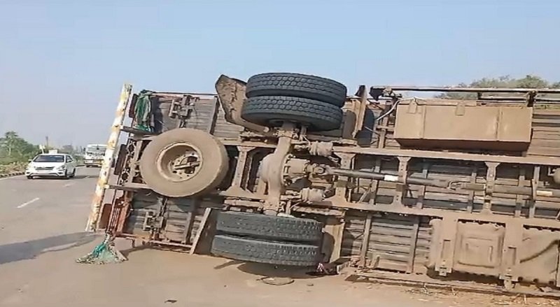 मुरैना में मक्का से भरा ट्रक पलटा: गाय को बचाने की कोशिश में हादसा, चालक और क्लीनर घायल