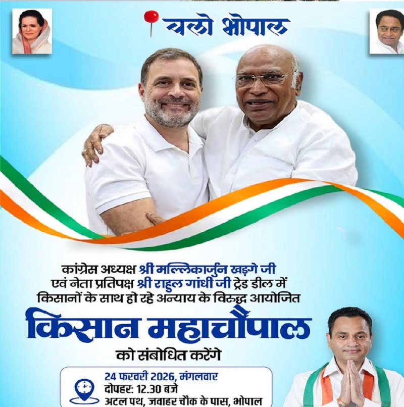 भोपाल /भारत और अमेरिका के बीच प्रस्तावित ट्रेड डील के विरोध में कांग्रेस ने मंगलवार को भोपाल में बड़ा प्रदर्शन आयोजित करने का ऐलान किया है। राजधानी के अटल पथ पर किसानों की विशाल चौपाल लगाई जाएगी, जिसमें देशभर के वरिष्ठ कांग्रेस नेता शामिल होंगे। इस कार्यक्रम में कांग्रेस के राष्ट्रीय अध्यक्ष Mallikarjun Kharge और लोकसभा में नेता प्रतिपक्ष Rahul Gandhi विशेष रूप से मौजूद रहेंगे। कांग्रेस के अनुसार यह ट्रेड डील किसानों और छोटे व्यापारियों के हितों के खिलाफ है। पार्टी का आरोप है कि यदि यह समझौता मौजूदा स्वरूप में लागू होता है तो देश के कृषि क्षेत्र पर नकारात्मक असर पड़ेगा और स्थानीय बाजारों में विदेशी दबाव बढ़ेगा। इसी मुद्दे को लेकर कांग्रेस ने इसे जनआंदोलन का रूप देने की तैयारी की है। कार्यक्रम के तहत दोपहर एक बजे दोनों वरिष्ठ नेता भोपाल पहुंचेंगे और लगभग दो बजे सभा स्थल पर उपस्थित होकर किसानों को संबोधित करेंगे। सम्मेलन में प्रदेशभर से आए किसानों की भागीदारी होगी। कांग्रेस ने दावा किया है कि इस आंदोलन में करीब एक लाख किसान शामिल होंगे। विशेष रूप से भोपाल के आसपास के 11 जिलों से बड़ी संख्या में किसानों के पहुंचने की संभावना जताई गई है। कांग्रेस नेताओं का कहना है कि यह केवल एक राजनीतिक कार्यक्रम नहीं बल्कि किसानों की आवाज को राष्ट्रीय मंच तक पहुंचाने का प्रयास है। चौपाल के माध्यम से किसान अपनी समस्याएं, आशंकाएं और सुझाव खुलकर रख सकेंगे। पार्टी इस मुद्दे को संसद से लेकर सड़क तक उठाने की रणनीति पर काम कर रही है। इसी कड़ी में कांग्रेस व्यापारिक संगठनों से भी संवाद करेगी। प्रदेश प्रभारी हरीश चौधरी भोपाल के श्यामला हिल्स और लखेरापुरा क्षेत्रों में व्यापारियों से मुलाकात करेंगे। अमेरिका ट्रेड डील के संभावित प्रभावों पर चर्चा की जाएगी और व्यापारियों की राय जानी जाएगी। दोपहर साढ़े तीन बजे कांग्रेस नेता और कार्यकर्ता बाजार क्षेत्रों में पहुंचकर आम व्यापारियों से संवाद करेंगे। भोपाल में प्रस्तावित यह मेगा प्रदर्शन प्रदेश की राजनीति में हलचल पैदा कर रहा है। कांग्रेस इसे किसान हितों की रक्षा का आंदोलन बता रही है, वहीं राजनीतिक विश्लेषकों का मानना है कि आगामी चुनावी समीकरणों के लिहाज से भी यह कार्यक्रम महत्वपूर्ण साबित हो सकता है। अटल पथ पर होने वाली यह किसानों की चौपाल केवल एक सभा नहीं बल्कि केंद्र सरकार की नीतियों के खिलाफ कांग्रेस का बड़ा शक्ति प्रदर्शन मानी जा रही है। अब नजर इस बात पर रहेगी कि इस आंदोलन का राजनीतिक और सामाजिक प्रभाव कितना व्यापक होता है।
