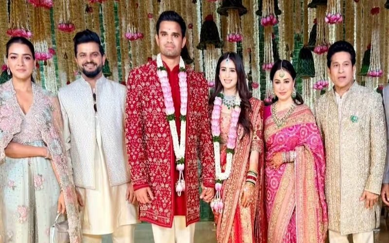 Arjun Tendulkar wedding: सचिन तेंदुलकर के बेटे अर्जुन की शादी: सानिया चंडोक संग मुंबई में रचाई जोड़ी, अमिताभ, अंबानी, धोनी-द्रविड़ समेत सितारे हुए शामिल