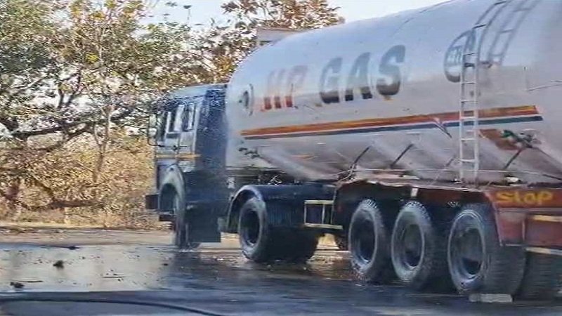 गादेर घाटी में बड़ा हादसा टला: LPG टैंकर कंटेनर से टकराया, गैस रिसाव से मची अफरा-तफरी, पुलिस-फायर टीम ने संभाली स्थिति