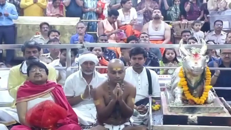 नर्मदा परिक्रमा कर रहे संत दादा गुरु ने किए महाकालेश्वर के दर्शन, दधियोदक आरती में हुए शामिल