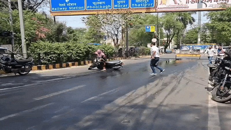 ग्वालियर में तानसेन होटल तिराहा पर तेल फैलने से बाइक सवार घायल, ट्रैफिक बाधित
