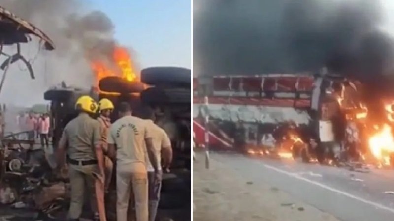 आंध्र प्रदेश में दर्दनाक हादसा, बस-ट्रक की टक्कर के बाद भड़की आग, 14 लोगों की जिंदा जलकर मौत