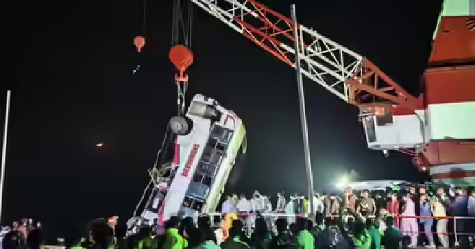 नई दिल्ली। बांग्लादेश में एक दिल दहला देने वाला सड़क हादसा सामने आया है, जहां एक यात्री बस अनियंत्रित होकर पद्मा नदी में गिर गई। इस भीषण दुर्घटना में अब तक 18 लोगों की मौत की पुष्टि हो चुकी है, जबकि कई यात्री अब भी लापता बताए जा रहे हैं। हादसा राजबारी जिले के गोवालैंड उपजिला स्थित दौलतदिया फेरी टर्मिनल पर बुधवार शाम करीब 5:15 बजे हुआ। प्रत्यक्षदर्शियों के अनुसार, बस नदी पार करने के लिए अपनी बारी का इंतजार कर रही थी, तभी अचानक नियंत्रण खो बैठी और सीधे नदी में जा गिरी। स्थानीय मीडिया रिपोर्ट्स के मुताबिक, बस कुश्तिया के कुमारखाली से ढाका जा रही थी और रास्ते में अलग-अलग स्थानों से यात्रियों को बैठाया गया था। बताया जा रहा है कि बस में कुल करीब 50 लोग सवार थे, जबकि बस की क्षमता 40 सीटों की थी। हादसे के बाद मौके पर अफरा-तफरी मच गई और तुरंत राहत एवं बचाव कार्य शुरू किया गया। बचाव अभियान के तहत ‘हमजा’ नामक रेस्क्यू शिप को लगाया गया, जिसने करीब छह घंटे की मशक्कत के बाद डूबी हुई बस को नदी से बाहर निकाला। देर रात करीब 11:30 बजे क्रेन की मदद से बस को पानी से बाहर निकाला गया। इसके बाद बस के अंदर से 16 शव बरामद किए गए, जिनमें महिलाएं, पुरुष और बच्चे शामिल थे। इससे पहले दो घायलों को अस्पताल ले जाया गया, जहां उन्हें मृत घोषित कर दिया गया, जिससे कुल मृतकों की संख्या 18 हो गई। फरीदपुर फायर सर्विस के कमांडर मोहम्मद बेलाल उद्दीन ने बताया कि हादसे के बाद बड़ी संख्या में लोग लापता हो गए थे। राहत दल लगातार नदी में सर्च ऑपरेशन चला रहे हैं और गोताखोरों की मदद से बस के आसपास तलाशी ली जा रही है। हालांकि बस के दरवाजे और खिड़कियां टूट जाने के कारण अंदर पहुंचना काफी मुश्किल हो गया था। हादसे की वजह अभी साफ नहीं हो पाई है, लेकिन शुरुआती जांच में ड्राइवर द्वारा नियंत्रण खोने की आशंका जताई जा रही है। प्रशासन ने पूरे मामले की जांच के आदेश दे दिए हैं और मृतकों के परिजनों को हर संभव सहायता देने का आश्वासन दिया है। इस दर्दनाक हादसे के बाद पीड़ित परिवारों का रो-रोकर बुरा हाल है। वहीं स्थानीय प्रशासन और बचाव दल पूरी मुस्तैदी से लापता लोगों की तलाश में जुटे हुए हैं।