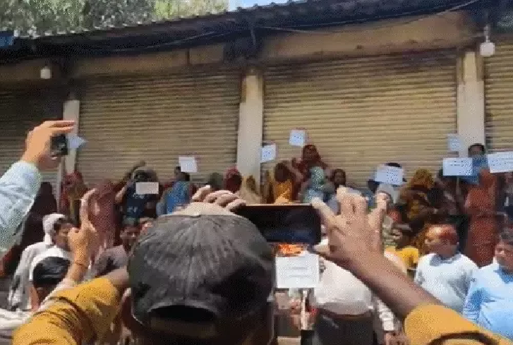 भोपाल में शराब दुकान के खिलाफ धरना: जिपं उपाध्यक्ष ने शटर गिराकर किया विरोध, हाथों में तख्तियां