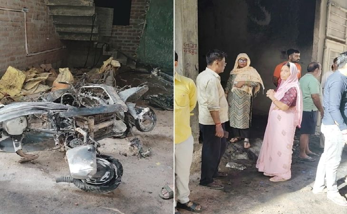 ग्वालियर हादसा: घर में आग से ट्रैक्टर, स्कॉर्पियो, बाइक-स्कूटी जलीं; बोरिंग पंप से बुझाई गई आग