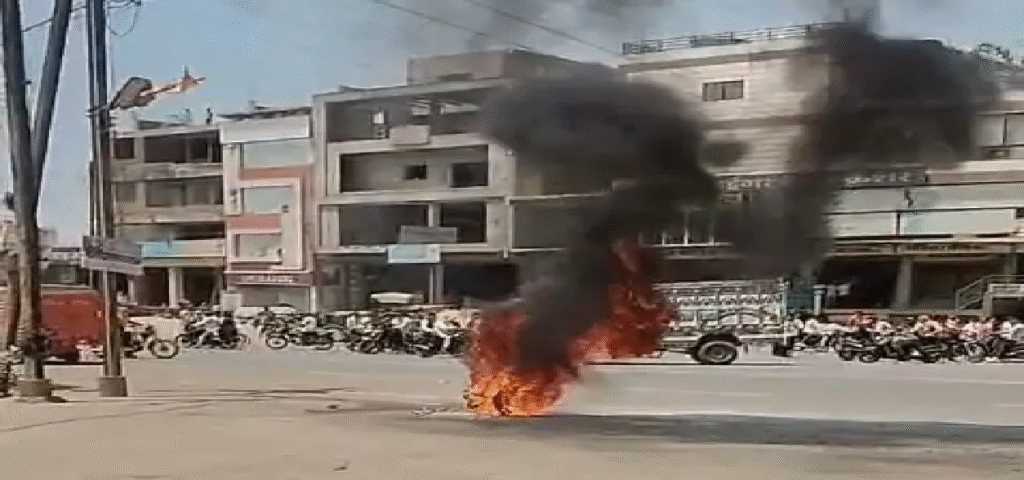 गुना : नानाखेड़ी मंडी गेट पर स्कूटी बनी आग का गोला, वीडियो वायरल