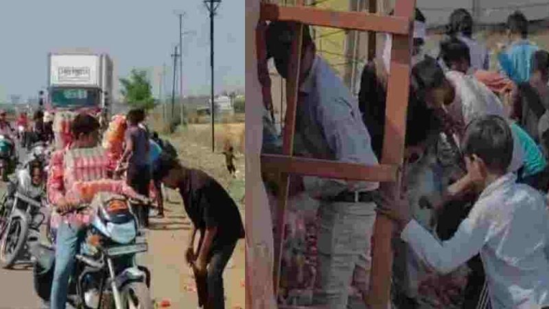 ट्रक हादसे के बाद लूट का नजारा, विदिशा में घायल की जगह बोतलें उठाने में लगे लोग