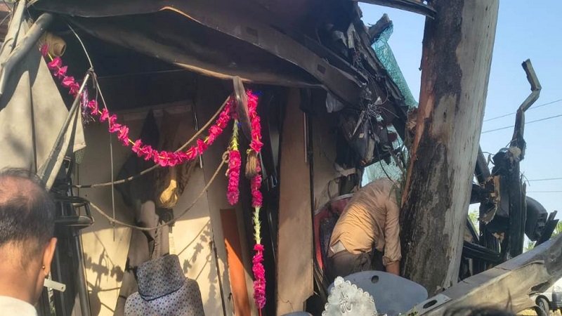 गाय बचाने की कोशिश में दर्दनाक हादसा सीहोर में बस पेड़ से टकराई हेल्पर की मौत
