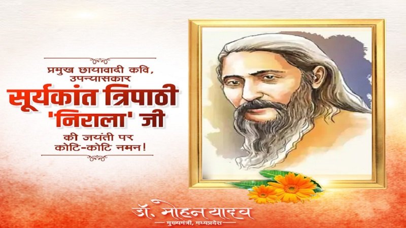 डॉ. यादव ने कहा कि निराला जी ने अपनी सशक्त लेखनी से संवेदना, स्वाभिमान और सामाजिक चेतना को एक नई दिशा दी, और उनका साहित्य आज भी पाठकों को प्रेरणा देता है। उन्होंने साहित्य के मानवीय मूल्यों, साहस और सृजनशीलता को हमेशा महत्व दिया, जो आज के समय में भी प्रेरणादायी है। मुख्यमंत्री ने इस महान साहित्यकार के योगदान के प्रति सम्मान व्यक्त करते हुए कहा कि निराला की रचनाएँ जीवन के गूढ़ अनुभवों और समाज की संवेदनशीलता को उजागर करती हैं, जो आज के पाठकों और लेखकों के लिए सदैव प्रेरणा स्रोत बनी रहेंगी।