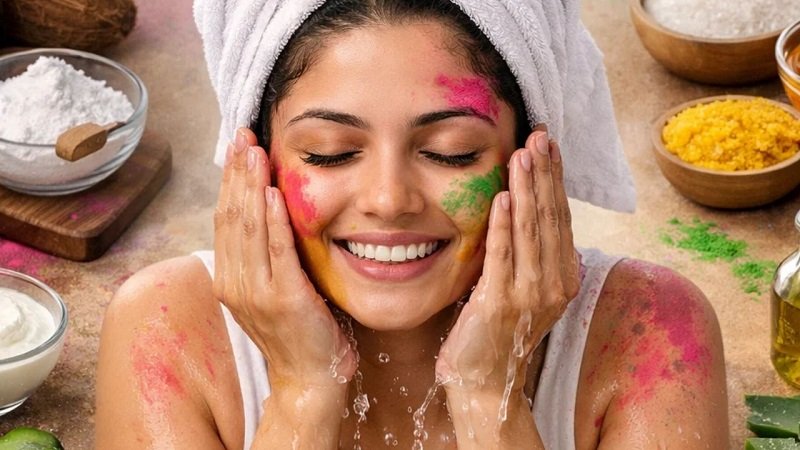 होली के बाद सबसे पहले सादे पानी से रंग धोएं। तुरंत साबुन या बॉडी वॉश का उपयोग न करें। जब ज्यादातर रंग निकल जाए तब हल्के क्लींजर का इस्तेमाल करें।